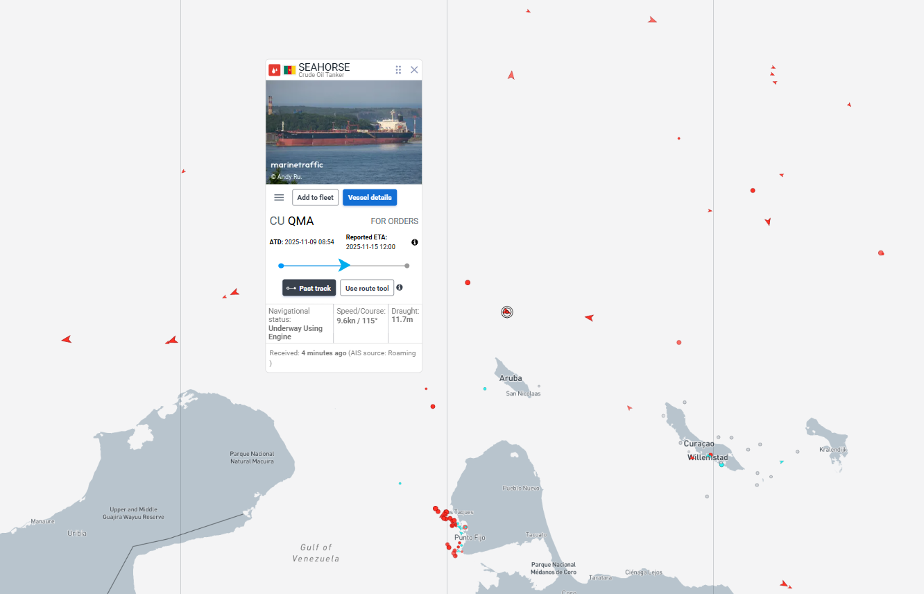 Según el monitor digital MarineTraffic, actualmente el Seahorse se encuentra al norte de Aruba, con el Terminal de Jose en el estado Anzoátegui como probable destino. Su trayectoria anterior habÃa tomado un pronunciado desvÃo justo encima del Golfo de Venezuela.