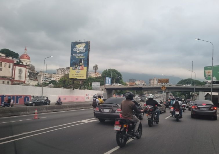 La fuerte restricción vehicular en la autopista Francisco Fajardo de Caracas generada por la tarima chavista instalada a la altura de Plaza Venezuela también afectó a los motorizados de la ciudad.