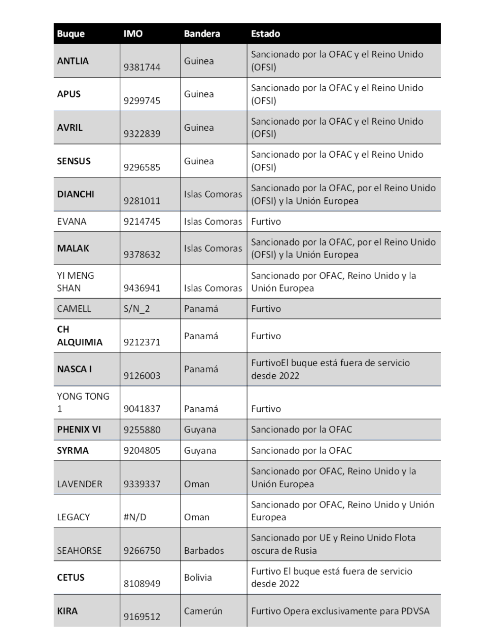 Buques sancionados y furtivos identificados en Venezuela en octubre de 2025