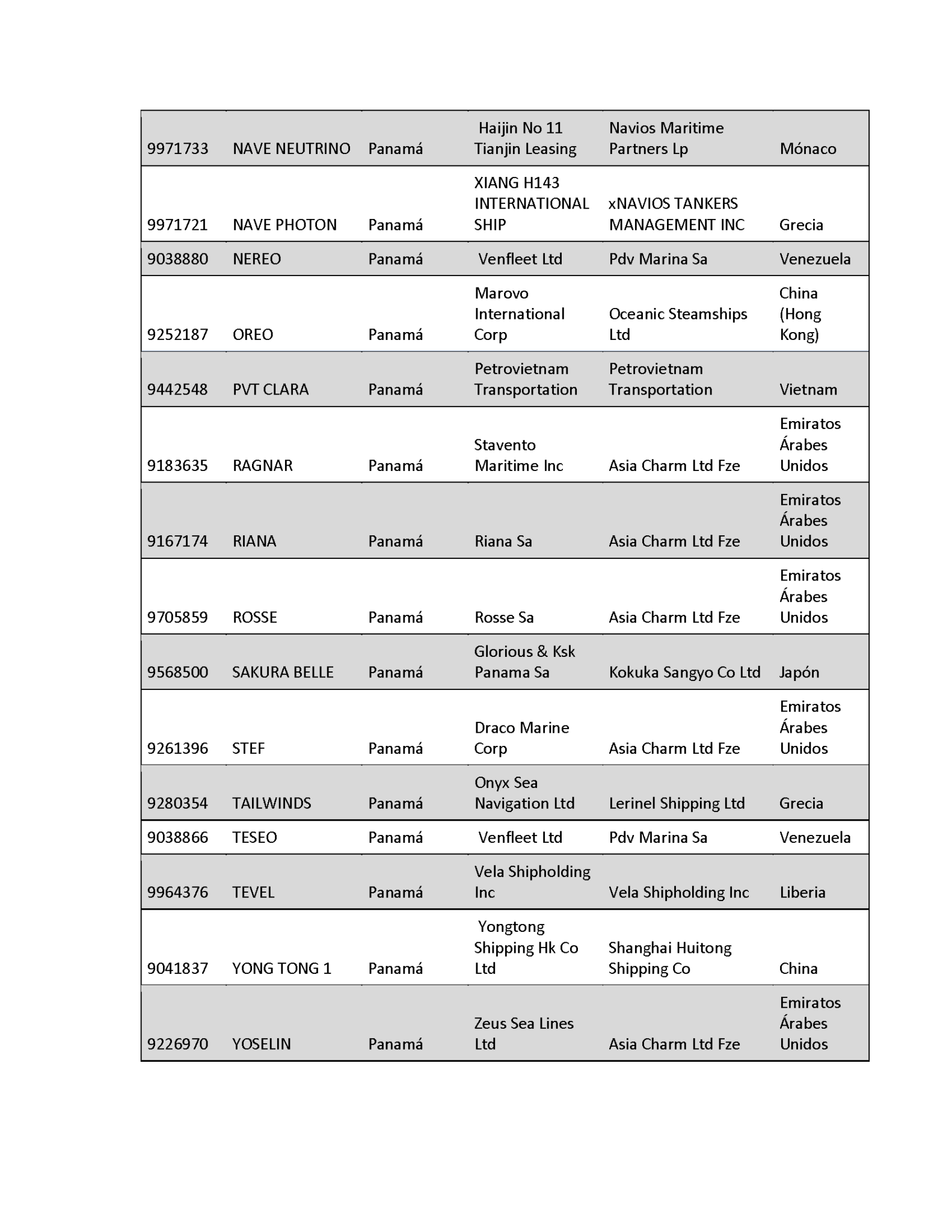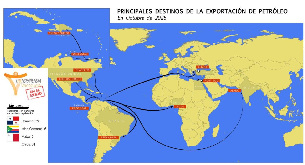 Al menos 19 buques que llegaron en octubre a puertos petroleros nacionales no habían visitado el país en más de cuatro meses. Los destinos declarados oficialmente en los manifiestos de los tanqueros son Curazao, República Dominicana, Nigeria, India, Turquía y Estados Unidos.