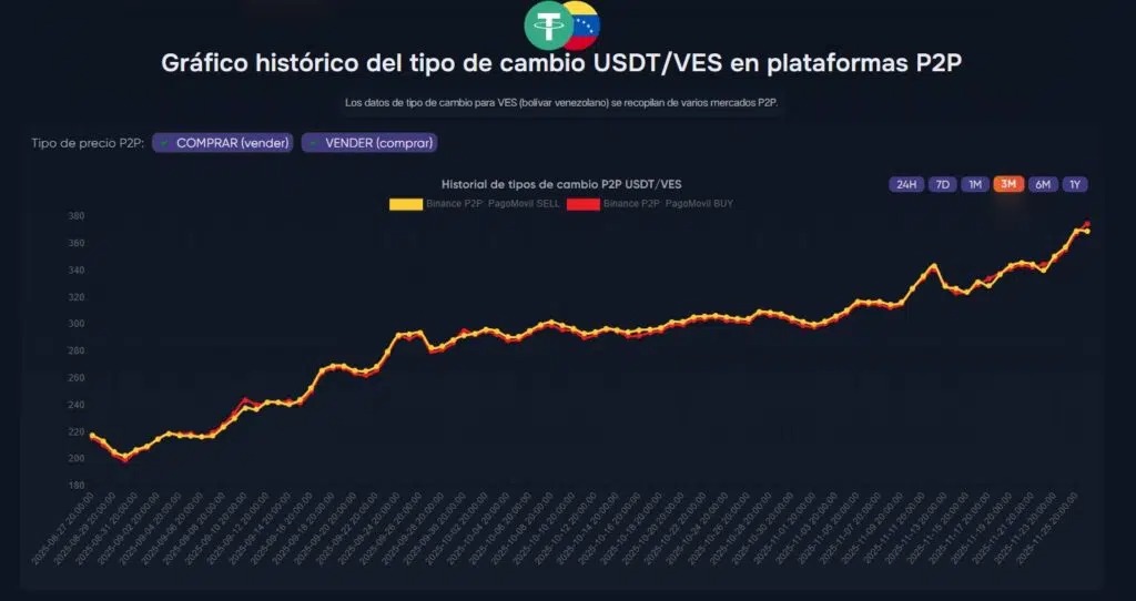 Además de Binance, donde el precio de la moneda oscila los 369 bolívares, en Bybit la stablecoin se comercia por encima de los 370 bolívares para la compra. En tanto, USDT se negocia en 372 bolívares para la compra en Crixto. Esta última es una de las plataformas de criptomonedas autorizadas a operar en Venezuela.