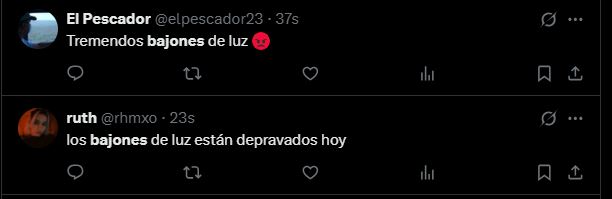 Usuarios como @elpescador23, alertaron sobre «tremendos bajones de luz» en la capital, describiendo el primer corte alrededor de las 2:30 pm.
